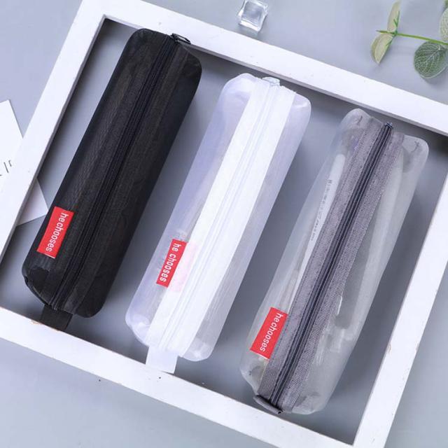 筆入れ ペン入れ ペンポーチ 透明 メッシュ ペンケース 薄型 柔らかい ペンケース クリアポーチ 収納ポーチ 筆箱 文房具 コスメポーチ 通学 学生 高校生 中学生 小学生