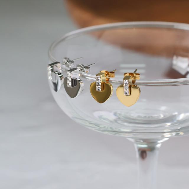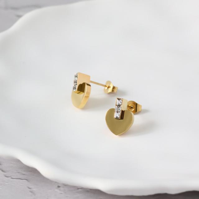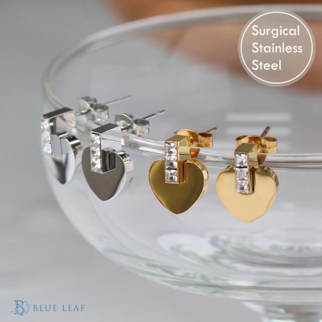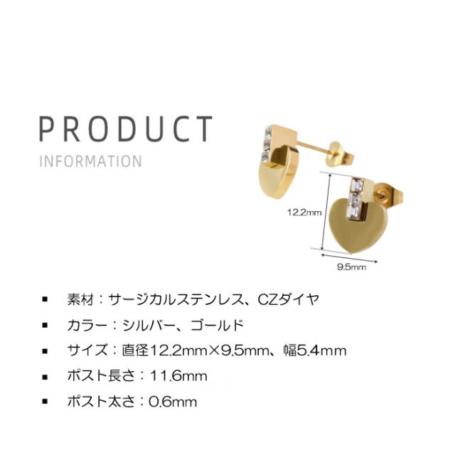 ピアス ハート CZダイヤ 小ぶり シンプル サージカルステンレス k18コーティング キュービックジルコニア キャッチ スタッド 両耳 ペア 低アレルギー シルバー ゴールド ジュエリー ニッケルフリー