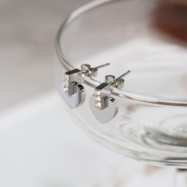 変色しにくい、変形しにくい、傷が付きにくい 大人気のステンレス素材のフープピアスです。 シンプルなハートモチーフに並んだCZダイヤがキラキラ輝く、大人可愛いピアスです。 ハートの表面は美しい鏡面仕上げとなっており、動くたびキラリと上品な輝きを放ちます。 日常使いからフォーマルな場面まで様々なシーンで活躍してくれます。 |