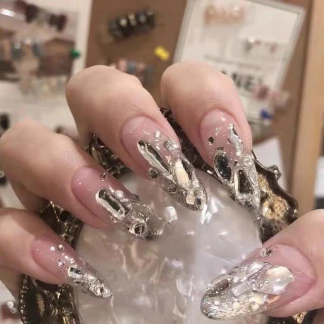 ネイルチップ 10枚入り キラキラ スクエア ロング つけ爪 ショート 淡い アートチップ デザインチップ 全4サイズ 手つくり 付け爪 各種デザイン 結婚式 披露宴 成人式 ウエディング ブライダル