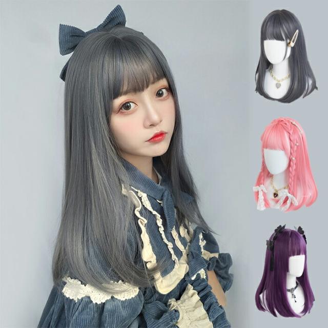 フルウィッグ ロング ユニセックス レディース メンズ ゆるふわ ミセス 医療用 大人 グレー ピンク パープル セミロング lolita cosplay コスプレ かつら レディース メンズ c-j