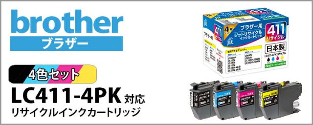 インク ブラザー brother LC411-4PK 対応 4色セット ジット リサイクルインクカートリッジ【JIT-B4114P】