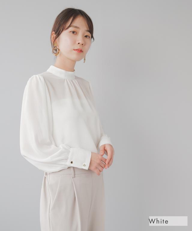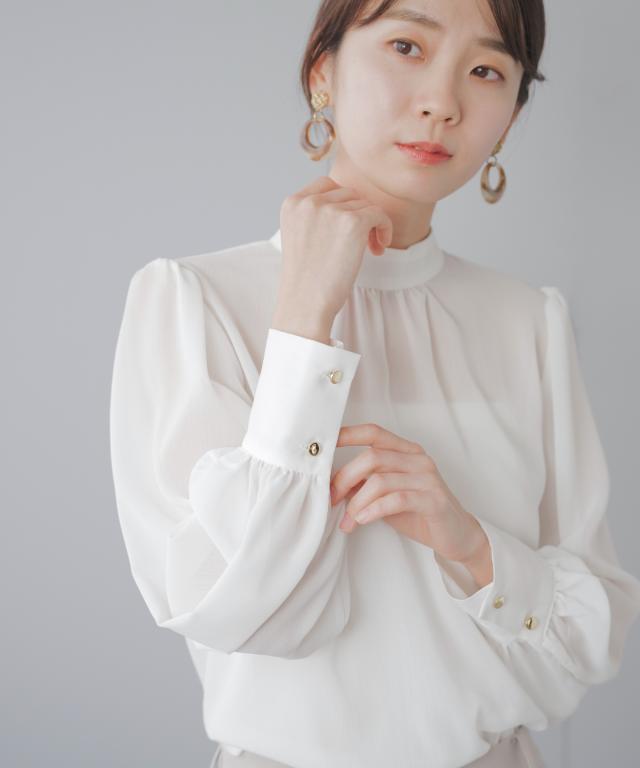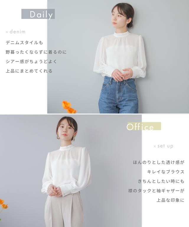 兼ね備えたシアースタンドブラウス