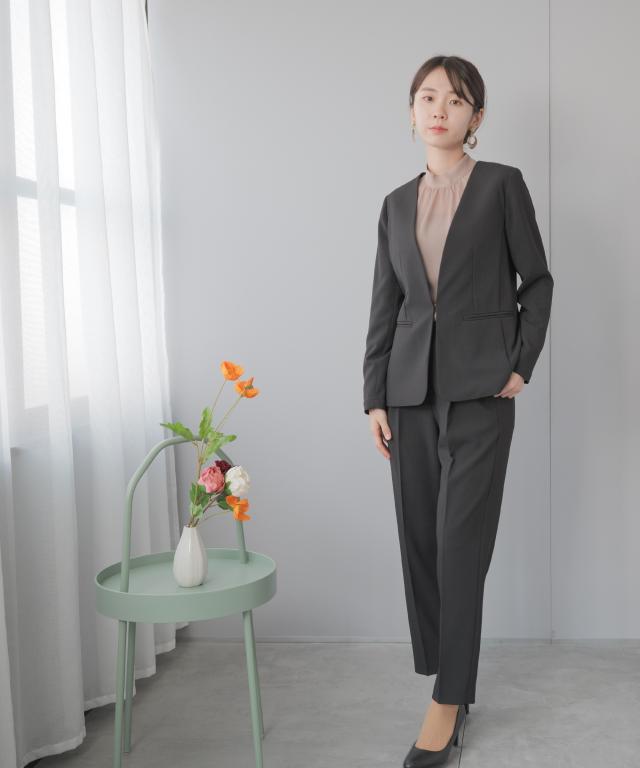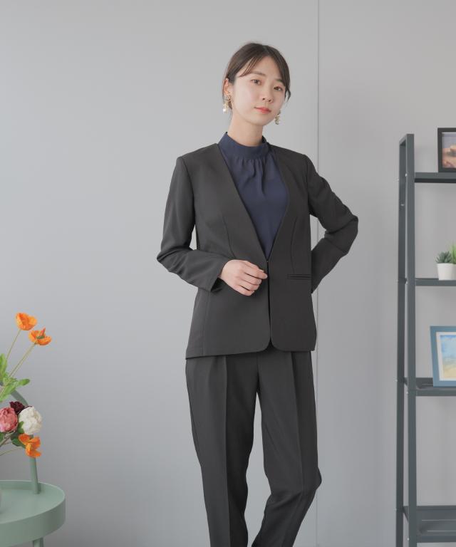 スタンドカラーにタックを入れることで、上品な印象もプラスしてくれる
