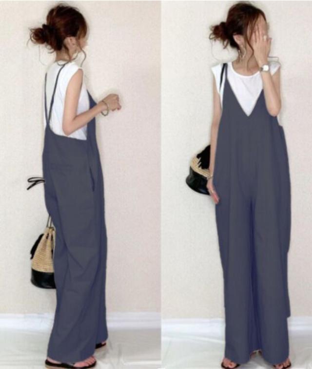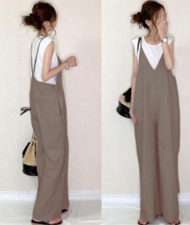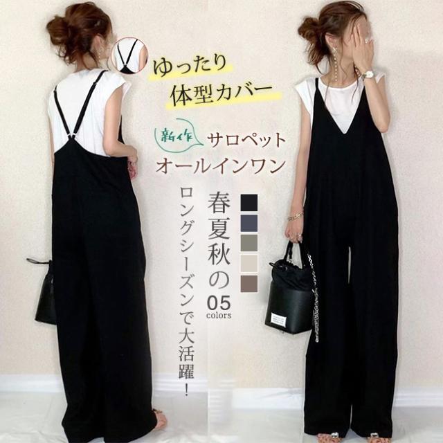 オールインワン サロペット パンツ レディース オーバーオール ワイドパンツ ジャンパー ズボン ロングパンツ ガウチョパンツ カジュアル ロング マキシ 春夏秋 ゆったり 体型カバー