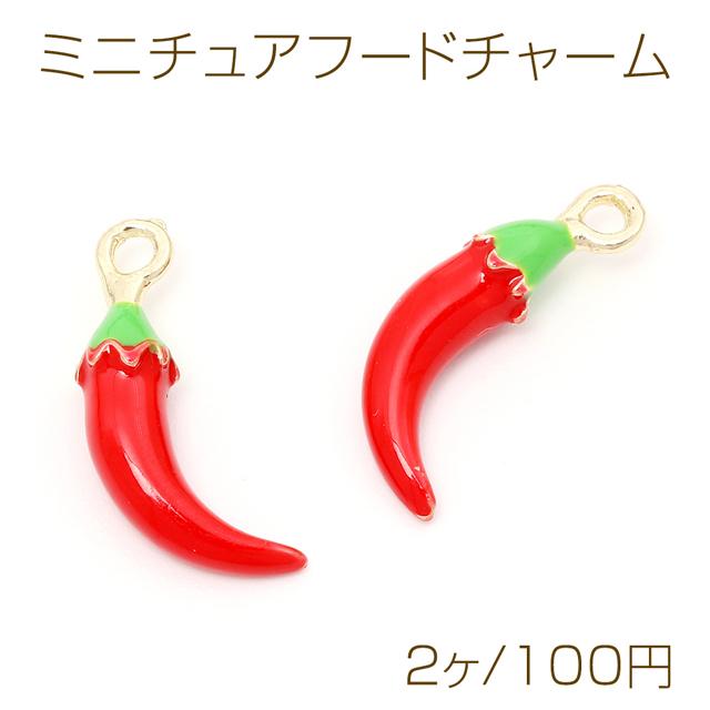 ミニチュアフードチャーム メタル製 食品サンプルチャーム フェイクフードチャーム 唐辛子 1カン付き 約4×17mm(2ヶ)