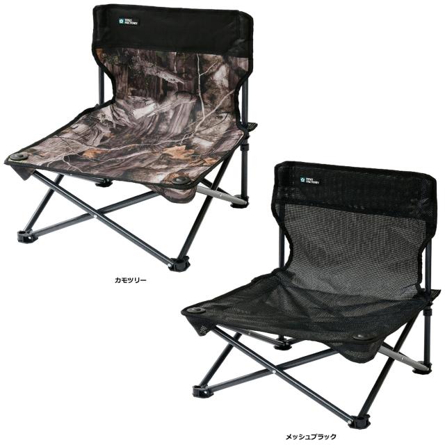 特徴:スムーズな収束が特長。使いやすく持ち運びやすいチェア。欧米向けのフレーム構造を採用(耐荷重約120kg)。座面は[あぐら座り]にもちょうどいい高さ(ウルトラロー)。スタイリッシュなカモツリー(迷彩)柄(CAT)と、テスリン素材を採用、耐水性・速乾性が特長のブラック(MBK)の2色展開。