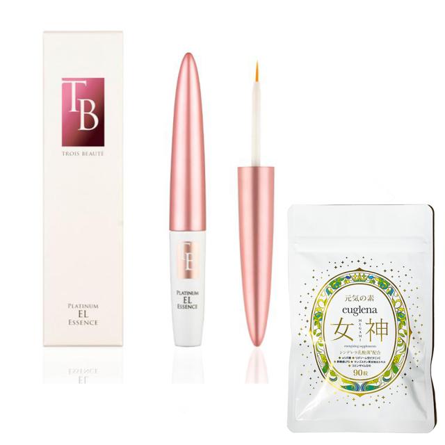 お得ユーグレナ女神90粒セット+トロワボウテ TBイーエルエッセンス 3ml まつげ美容液 正規品保障 TB EL essence Eyelash serum