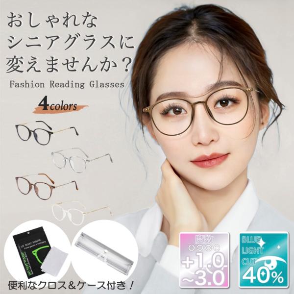 老眼鏡 レディース おしゃれ シニアグラス ピントグラス リーディンググラス ブルーライトカット 軽量 軽度