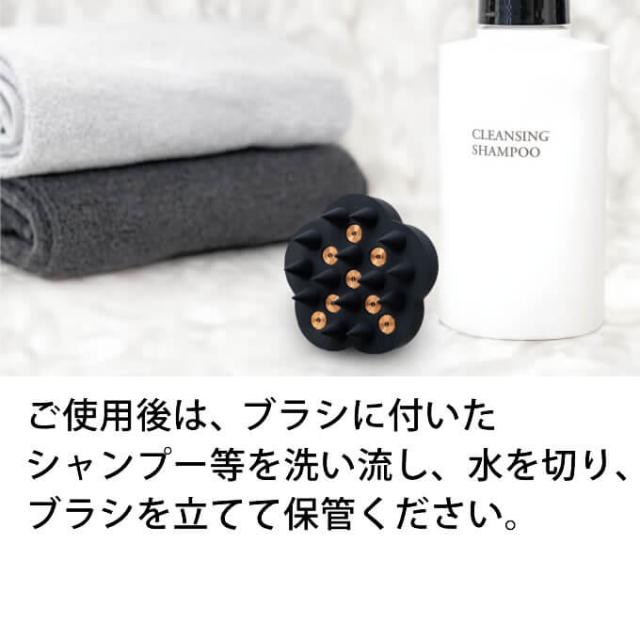 - ご使用後は、ブラシに付いたシャンプーやリンスを 洗い流し、水を切り、ブラシを立てて保管ください。