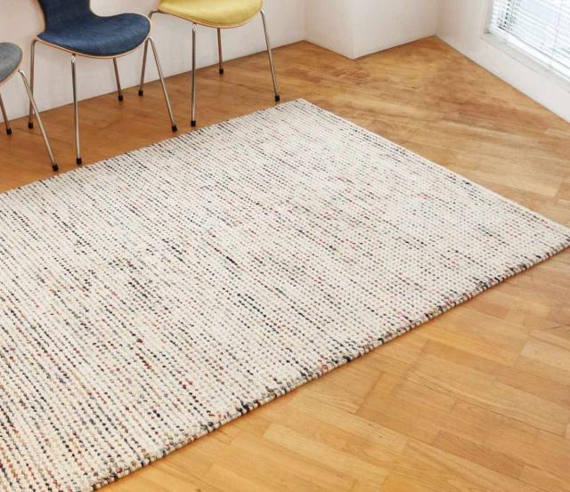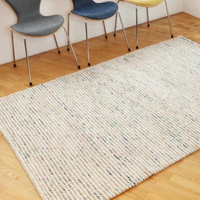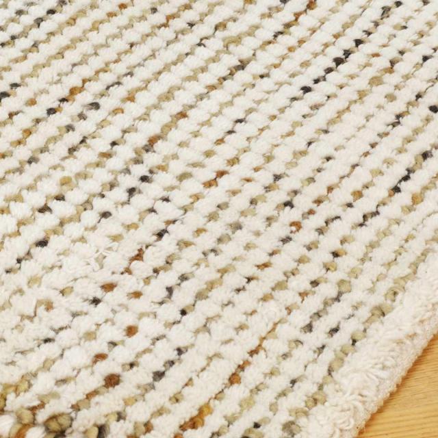 ●ニュアンスカラーとアイボリーの糸を交互に編み込んだラグです。