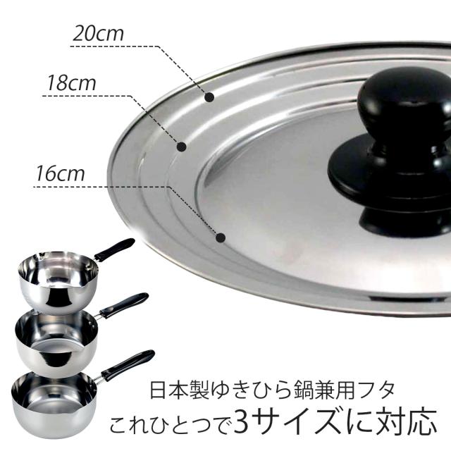 日本製 ゆきひら鍋 の 兼用フタ 16 18 20cm 用 ステンレス製 煮物 味噌汁 万能 カバー フライパンカバー フタ 鍋フタ 丈夫 頑丈 割れ あると 便利