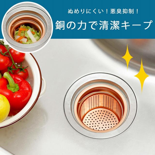 純銅製 ゴミポケット 日本製 殺菌 作用 悪臭 ぬめり 銅 つゆ対策 じめじめ対策 清潔 衛生的 銅イオン 抗菌 排水口 下村企販 銅で 殺菌作用 燕三条 ツバメ 国産