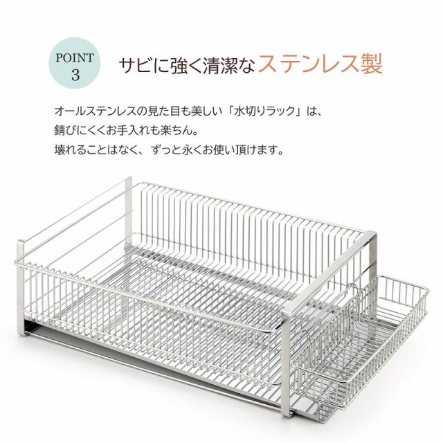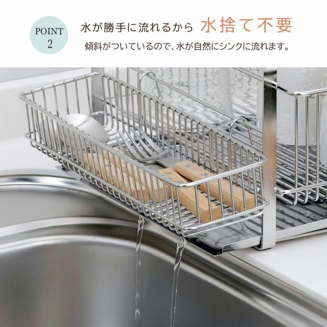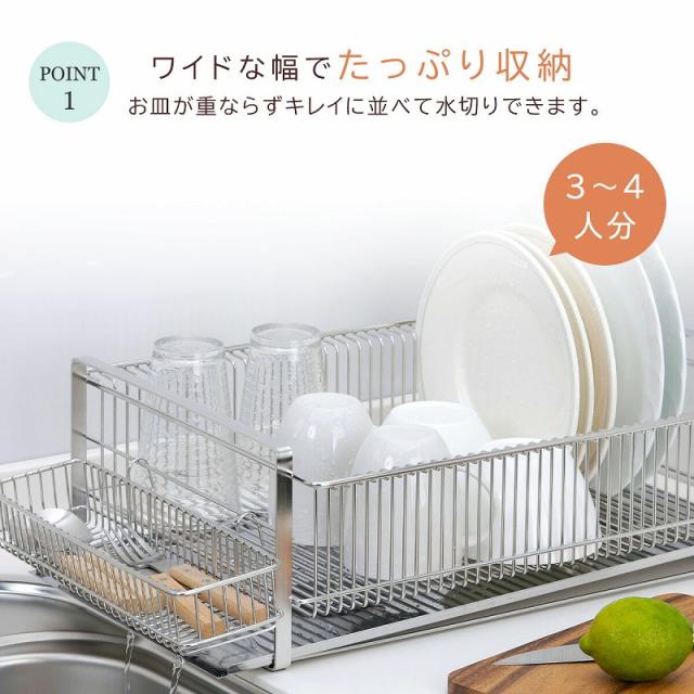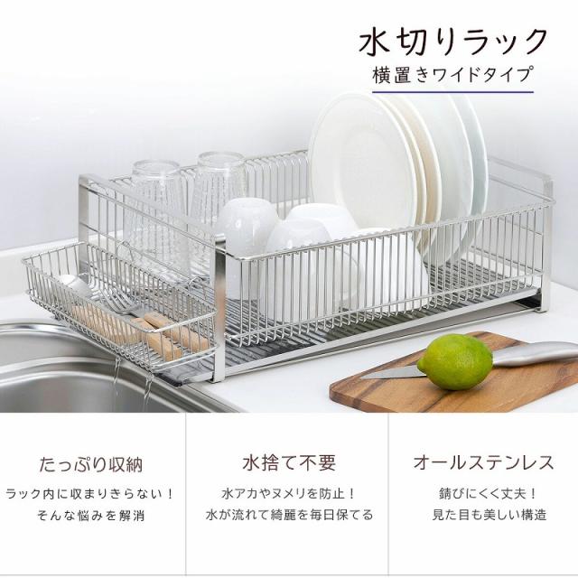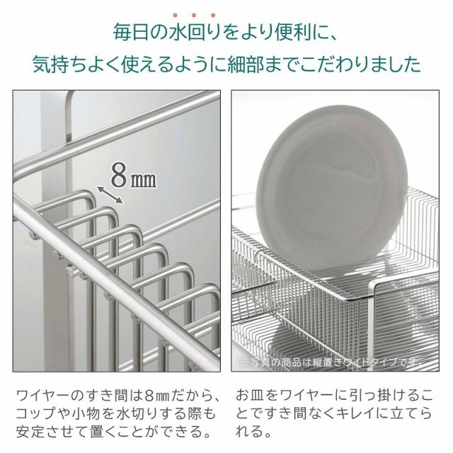 水切りラック ワイド 横置き (箸置き付) 日本製 水切りバスケット ステンレス 頑丈 丈夫 清潔 スッキリ かご 皿立て 下村企販 たっぷり 水切り 燕三条 ツバメ 国産