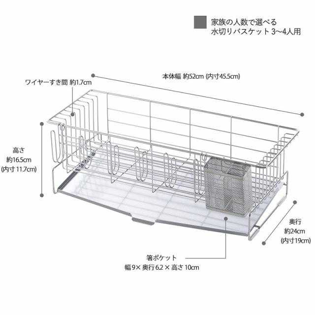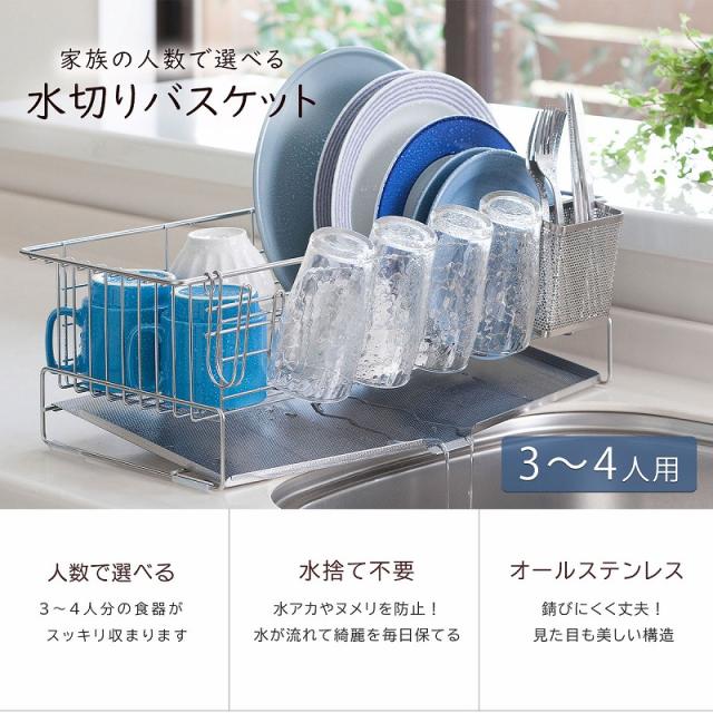 家族の人数で選べる 水切りバスケット 3-4人用 日本製 水切りラック コンパクト 省スペース ステンレス 丈夫 清潔 水切り 下村企販 長持ち グラスがたっぷり掛けられる 燕三条 ツバメ 国産