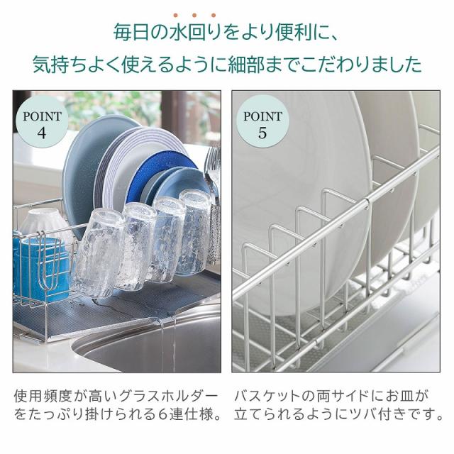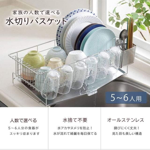 家族の人数で選べる 水切りバスケット 5-6人用 日本製 水切りラック コンパクト 省スペース ステンレス 丈夫 清潔 水切り 下村企販 長持ち グラスがたっぷり掛けられる 燕三条 ツバメ 国産