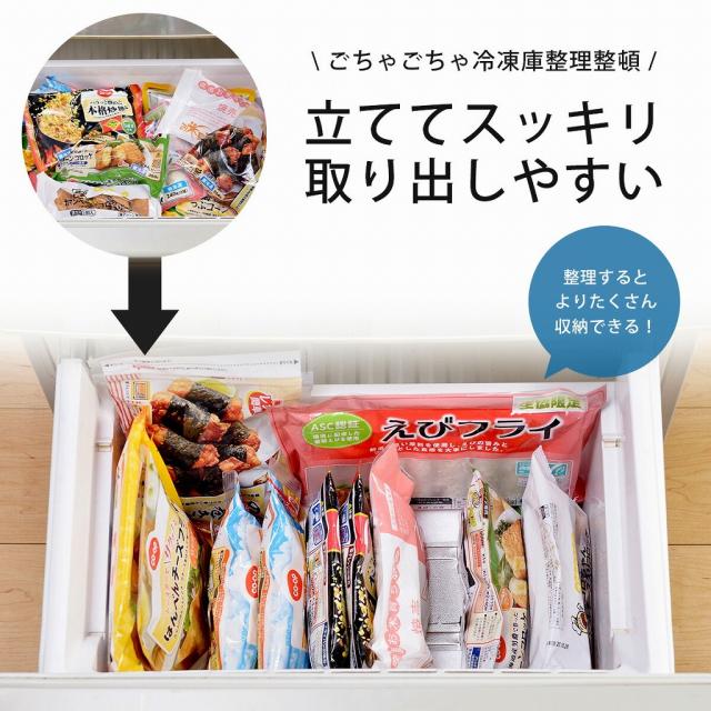 ![]() | 立ててスッキリ冷凍食品 重ねて入れがちの冷凍食品をスッキリ取り出しやすく整理できます。立てて置くことで、何がどこにあるかもわかりやすく、サッと取り出しやすい。きれいにしまえば、同じ商品の2重買いも防げます。 |