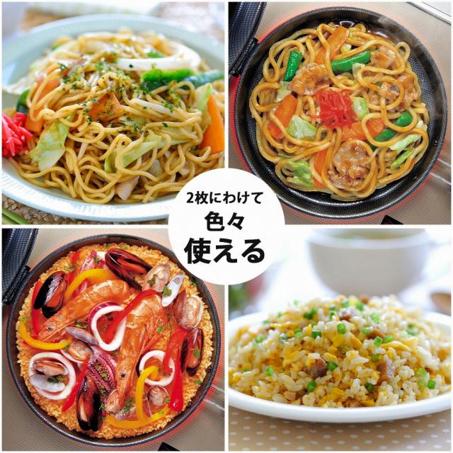 フックを外すせば2枚のフライパン お好み焼き・ホットケーキを焼くだけでなく、フライパンとしての使用ももちろんOK!分割できるからお手入れもらくらくです。 | ![]() |