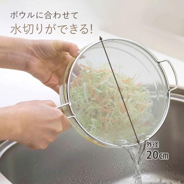 ![]() | 水切りにも使える 衛生的でお手入れもしやすいステンレス製。うらごし以外にも野菜の水切りにも便利です。 |