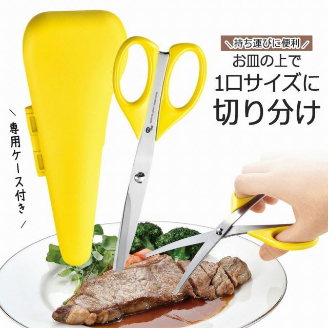 かるラク たべやすい食事ハサミ ケース付 日本製 ステンレス 子供 外食 ハサミ アウトドア テーブル 一口カット 焼肉 下村工業 一口サイズ に 簡単カット 燕三条 ツバメ 国産