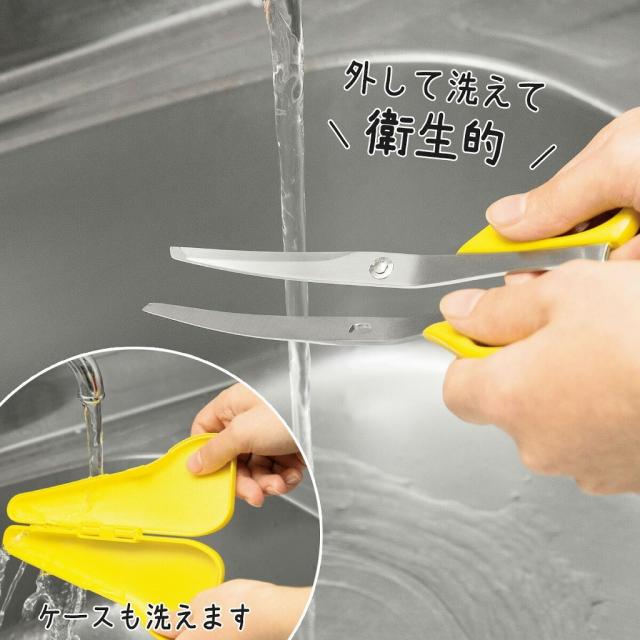 ![]() | ばらして洗って いつでも清潔! ハサミは2つにばらすことができます。ついた汚れも落としやすくすみずみまできれいに。ケースも洗うことができるので、いつでも清潔に使うことができます。 |