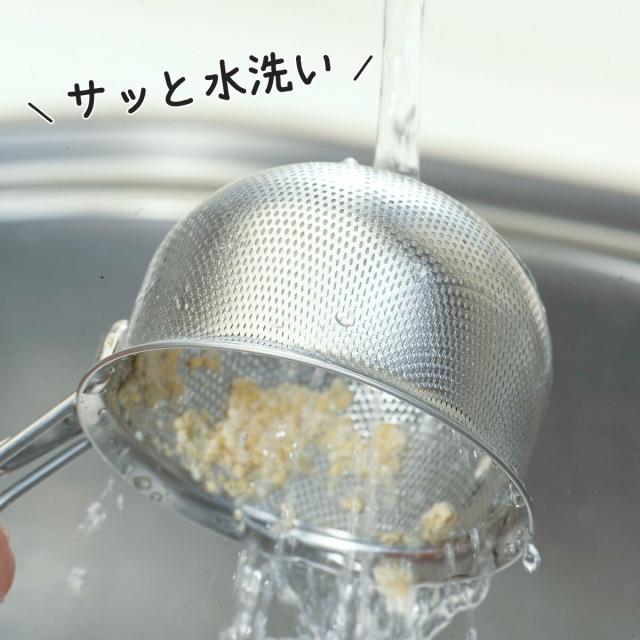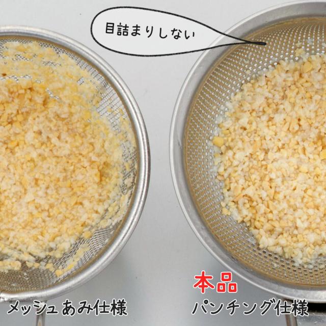 丈夫で目詰まりしにくいパンチングみそこし!パンチング材を使用していますので、汚れも落ちやすく、お手入れカンタン。