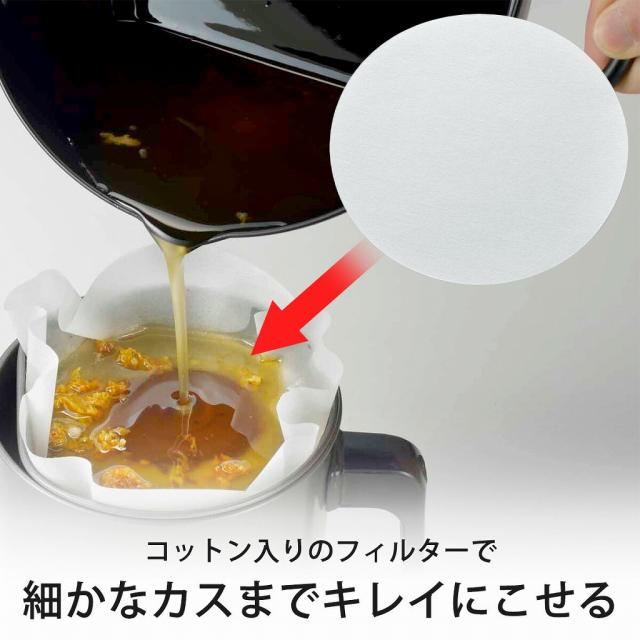 ![]() | 従来品よりキレイに こせるようになりました 揚げ物あとの油をオイルポットに戻す際に、このフィルターをこしアミの上に置いてください。コットン入りのフィルターが細かな揚げカスもポット下に落としません。 |