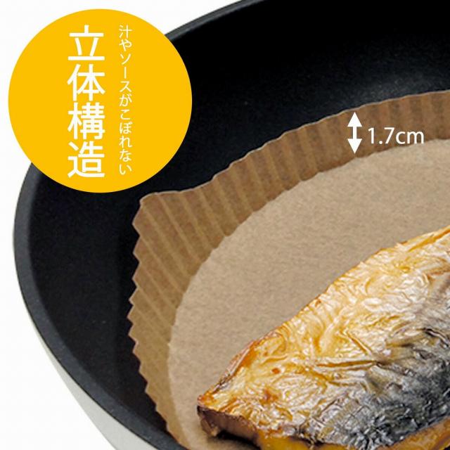 油いらずでヘルシー!フライパンに敷いて調理、フライパンが汚れないから後片付けラクラク。立体構造で、ソースがこぼれません。つまみ付きで皿に移しやすくしました。フライパン26cm用。