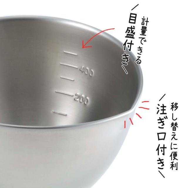 しっかり持てる 下ごしらえ ボール 日本製 ステンレス 目盛付き 注ぎ口付き お菓子作り 計量 製菓 深型 お好み焼き パンケーキ 業務用 お弁当 下 持ち手付き で かき混ぜ も らくらく 燕三条 ツバメ 国産