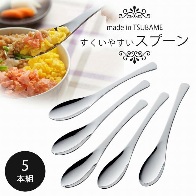 TSUBAME 『 サッとすくえる スプーン 』 5本組 スプーンセット ステンレス 日本製 燕 三条 金物 丈夫 スリム カトラリー 下村企販 サッとすくえて 食べやすい 燕三条 ツバメ 国産