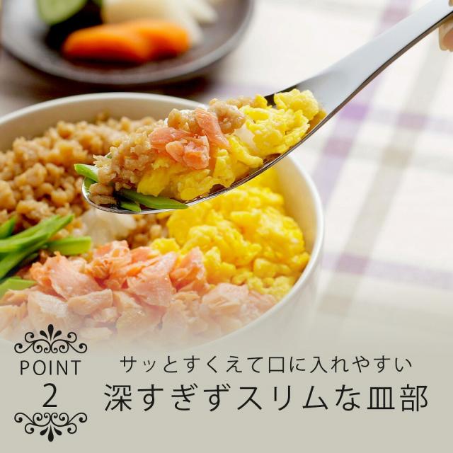 スリムで食べやすい 皿部は深すぎず幅もスリム。サッとすくえて食べやすいお皿形状。丼物やお粥、カレー・チャーハン等に。5本セットで家族みんなで使えます。 | ![]() |