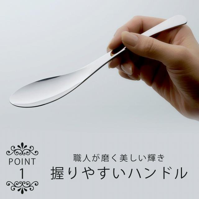 ![]() | made in TSUBAME 丈夫なステンレス製で、磨かれたすくい部は口当たりも滑らか。磨かれたすくい部は汚れもサッと落とすことができ、お手入れもかんたん。 |