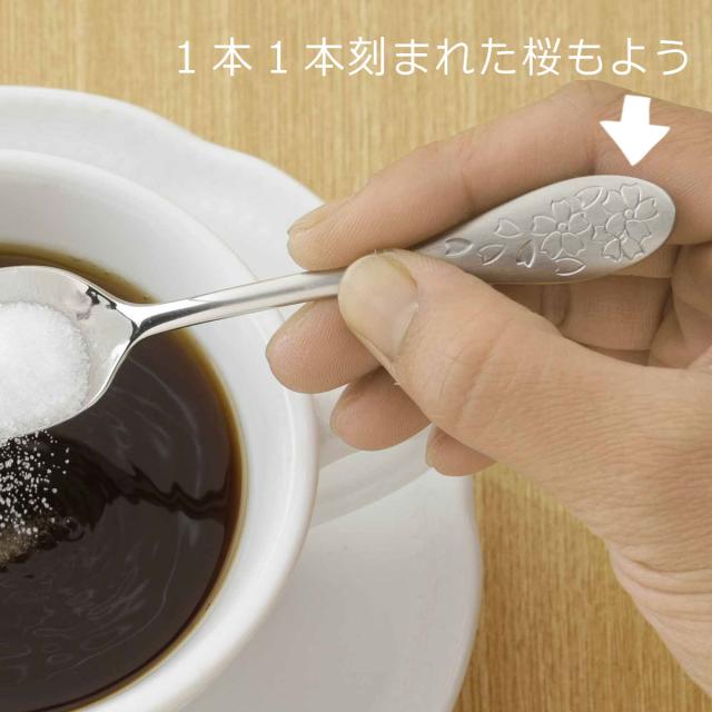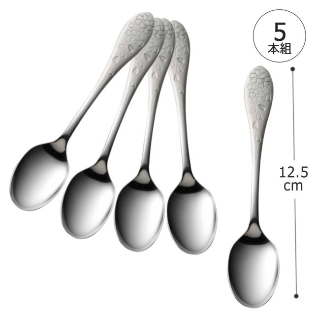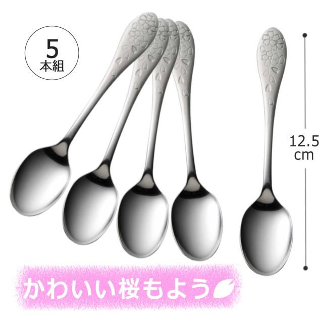 サクラ コーヒースプーン 5本組 日本製 ステンレス製 ミラー仕上げ さくら ピカピカ コーヒー ティースプーン 花 花びら SAKURA デザート 桜モチーフ かわいい 燕三条 ツバメ 国産