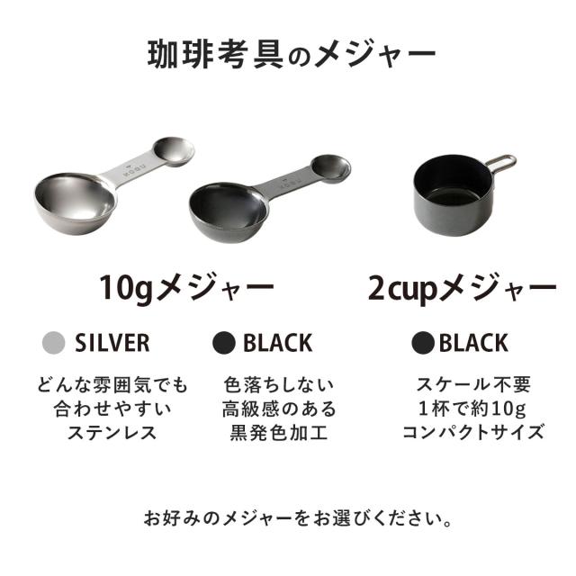 珈琲考具 黒 2cup メジャー コーヒーメジャー ステンレス 計量 カップ 8g 1g 調整 スプーン KOGU コーヒー豆 日本製 シンプル おしゃれ かっこいい 珈琲考具 メジャーカップ スプーン 計れる 計量 コーヒー豆