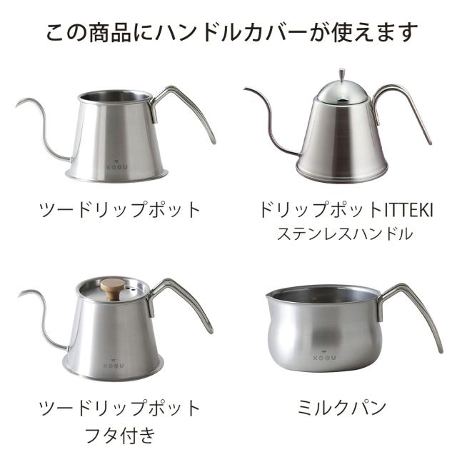 珈琲考具ドリップポット・ミルクパンに使えるハンドルカバー。ハンドルが熱くなりにくい!ステンレスハンドル製品におすすめ。牛革を使用し、使うほど手になじむハンドルカバーです。適応サイズ 幅3cm厚さ6mmまで。