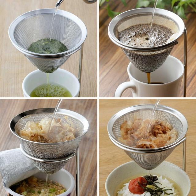 ![]() | ドリッパーは 色々な使い方で至福の時間 フィルターを使えばコーヒーも淹れられます。かつお節を入れてお湯を注げばかつお節の香りが立ち上る出汁茶漬けに! こだわりの道具だから、もちろん贈り物にも喜ばれます。 |
