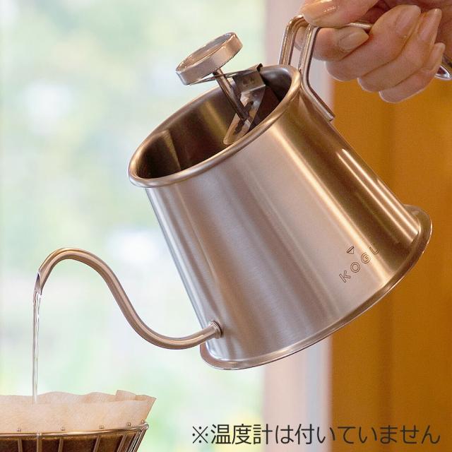 狙ったところに注げる! 極細口で一滴湯量に調整可能 フタのない仕様のドリップポット。シンプルなワイヤー曲げハンドル。ハンドルは注ぎやすい角度にしました。 使うシーンを考えて、扱いやすさを考えて、ムダをとことん削りシンプルにデザインしました。 コーヒードリップだけでなく、もちろんお茶を淹れる時にも。 直火OK!ガス火・IH電磁調理器にも使用できます。 | ![]() |