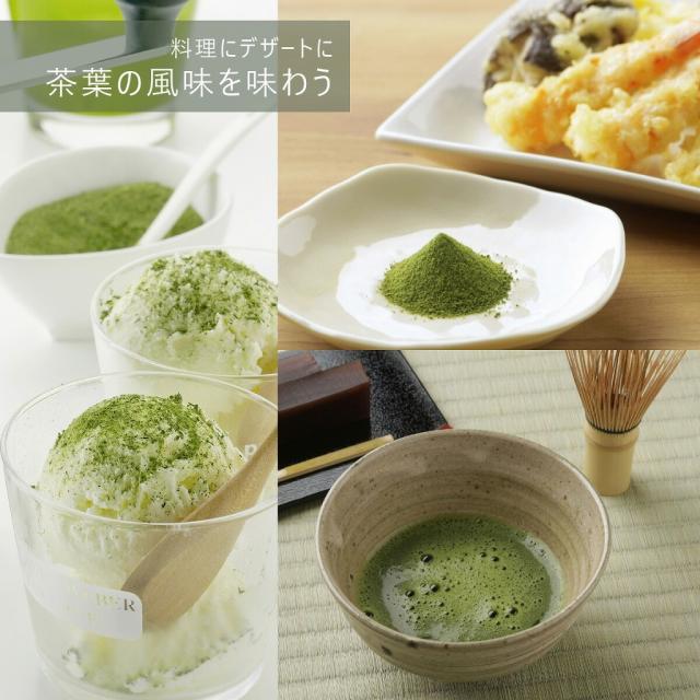 料理からデザートまで 茶葉の風味を楽しむ 挽きたての香り高い茶葉を料理やデザートでも味わうことができます。アイスのトッピングやケーキの生地などに混ぜこんで、新しいお茶の楽しみ方を。 | ![]() |
