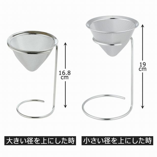 ![]() | 上下を入れ替えることで 高さ調節ができる! 小さい径を上にしてストレーナーをセットすれば、高さのあるカップラーメンやコーヒーサーバーに使えます。注ぎ入れるものに合わせて使い分けができます。 |