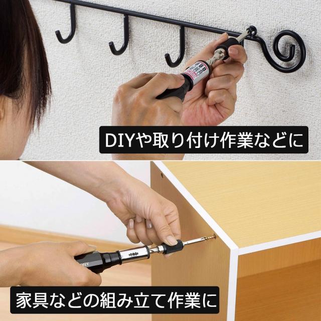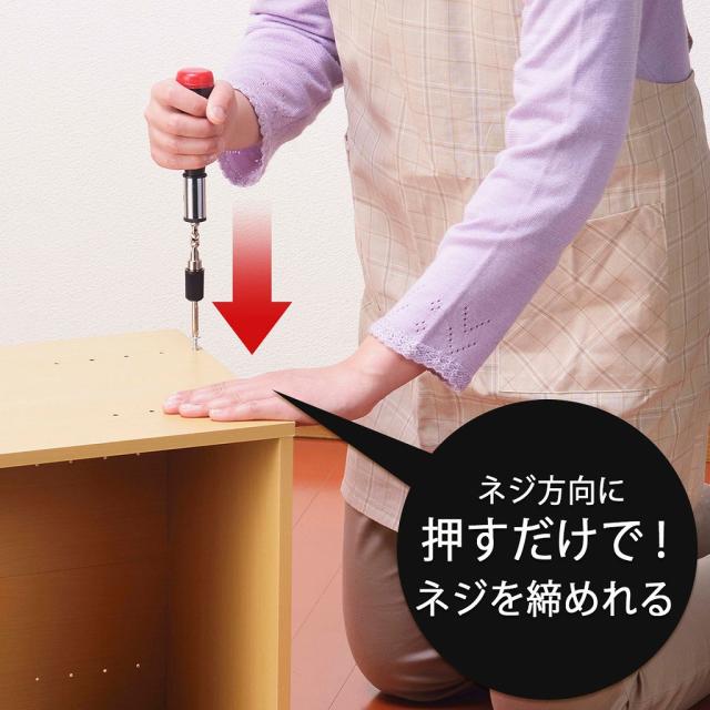 組立ても取付けも 手軽にラクラクDIY 力がなくてもかんたんプッシュでできるから、女性にもおすすめ。細いすき間のねじ締めはなかなか上手くできませんが、プッシュ式のドライバーなら力もいらないのでネジ締め、ネジの取り外しがかんたんです。 | ![]() |