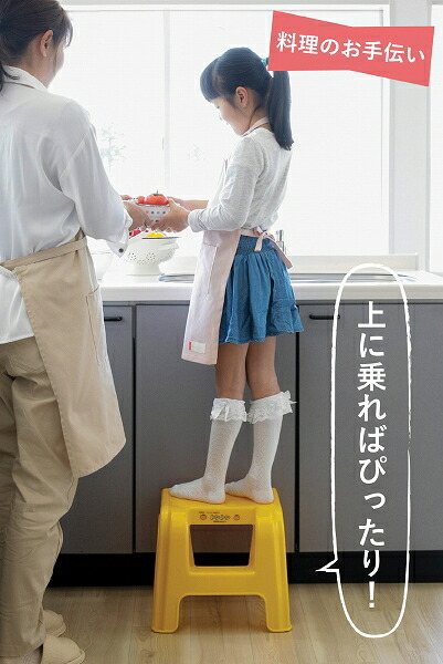 ![]() | お母さんのお手伝いに ぴったりサイズ 踏み台高さ30cm。キッチンでお料理のお手伝いするのに、作業しやすいちょうど良い高さです。お母さんと同じ目線でお子さんもはりきってお料理。 1段ステップが付いて上り下りもしやすい。 |