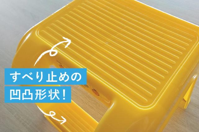 ![]() | すべりにくい凹凸形状 踏み台の上部は凹凸ですべりにくいです。 踏み台の足裏にもすべり止めゴムが付いているので、乗っている時にずれる心配もありません。 |