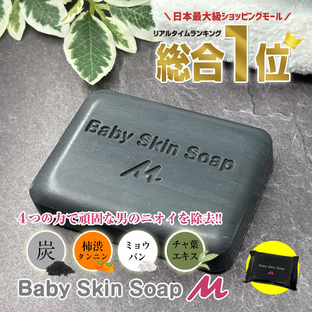 洗顔 メンズ【メンズベイビー1周年記念!55%OFFクーポン】 ベイビースキンソープM(メンズベイビー)【メール便】送料無料 男性の気になるニオイ・肌の悩み・頭皮ケアに★炭・カキタンニン・ミョウバン・チャ葉エキス★で男性ニオイを除去!加齢臭 汗臭 石鹸 毛穴 花粉