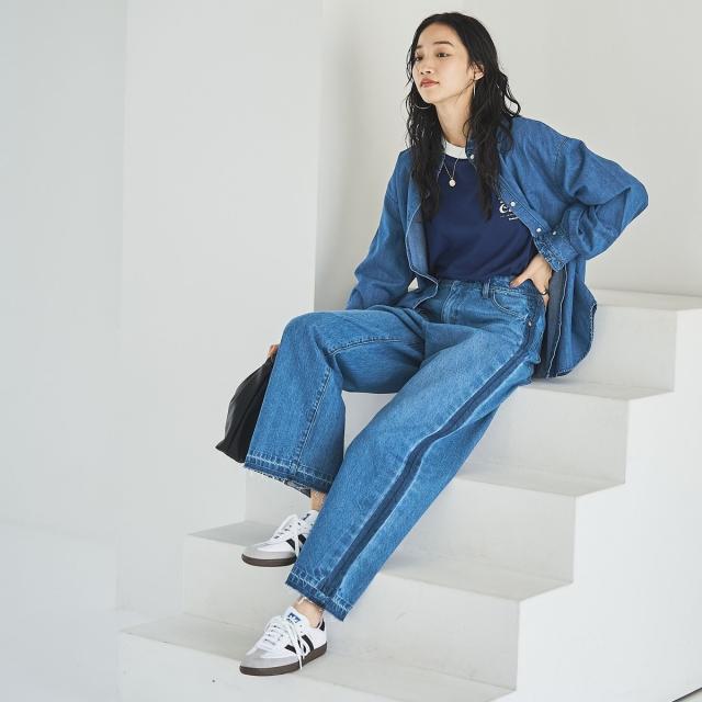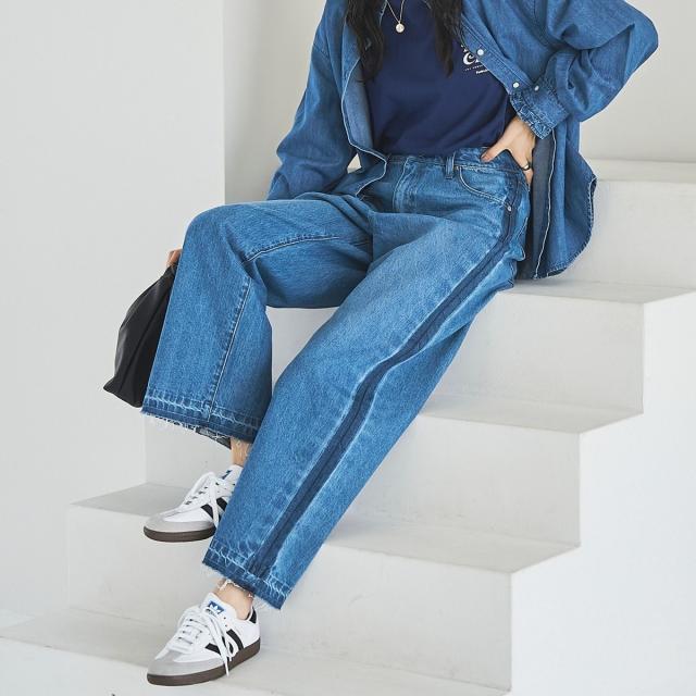 【スタイルアップ叶う】サイドラインカットオフバギーデニムパンツ