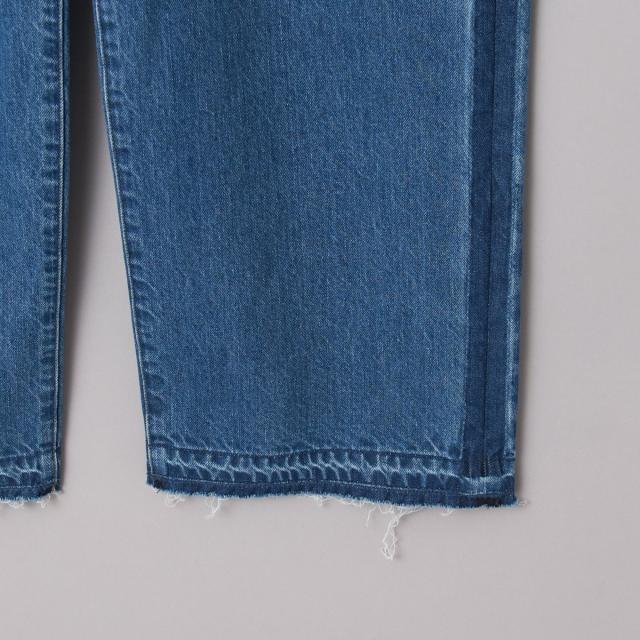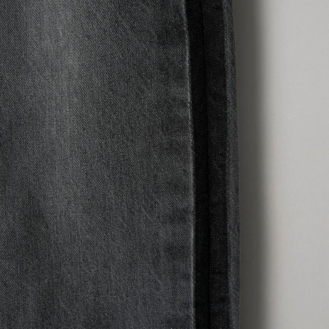 フォーマルなパンツに用いられる側章をデニムパンツに落とし込んだ特徴的なデザイン。