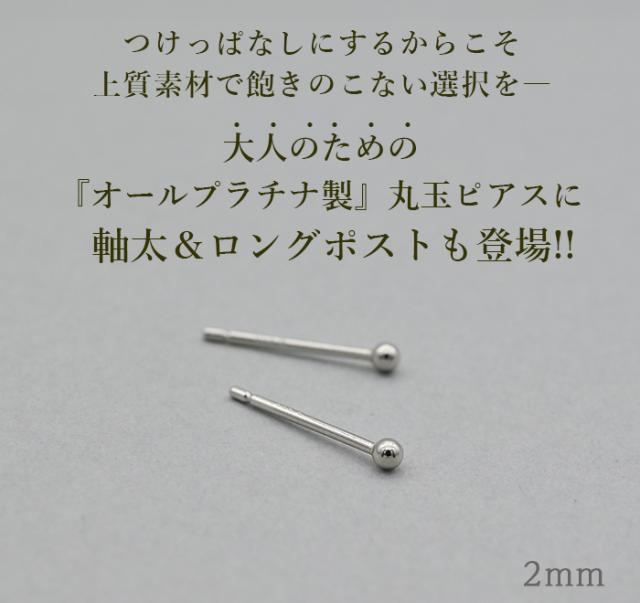 セカンドピアス プラチナ ピアス つけっぱなし 丸玉 2mm 軸太0.8 ロングポスト12mm 【特針】 片耳 1個 小さめ 大人 シンプル かわいい 一生もの メンズ レディース
