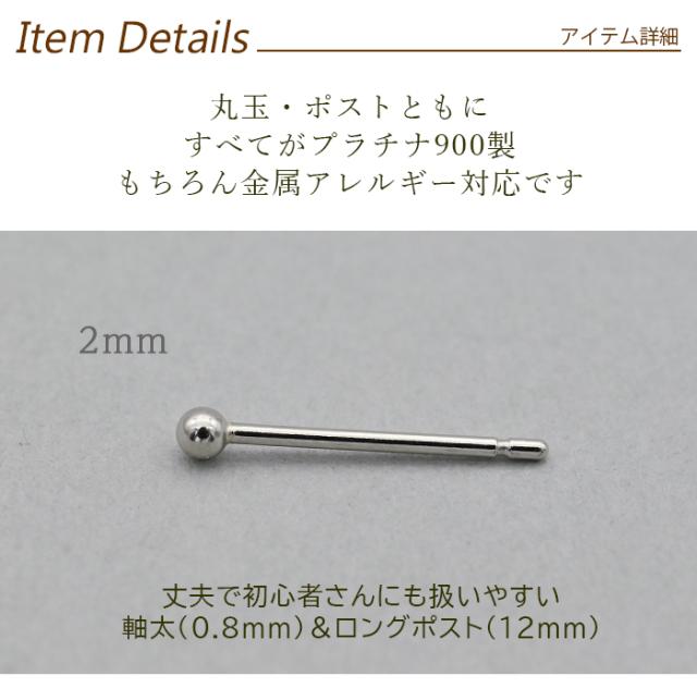 | 【特針】セカンドピアス ピアス オール プラチナ(PT900)製 丸玉ボール シンプルピアス [2mm] |