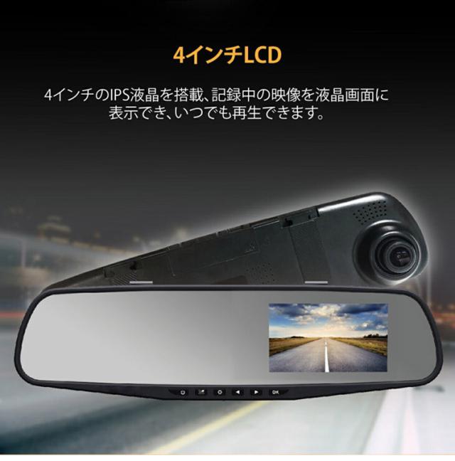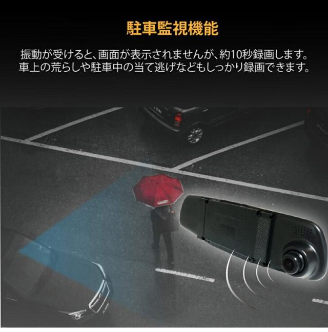 ミラー型ドライブレコーダー リアカメラ付き ルームミラー取付可能 マイクロSDカード付き 駐車監視機能 自動録画機能 音声 200万画素 煽り運転対策 車上荒らし 当て逃げ対策 あおり運転(代引不可)【送料無料】