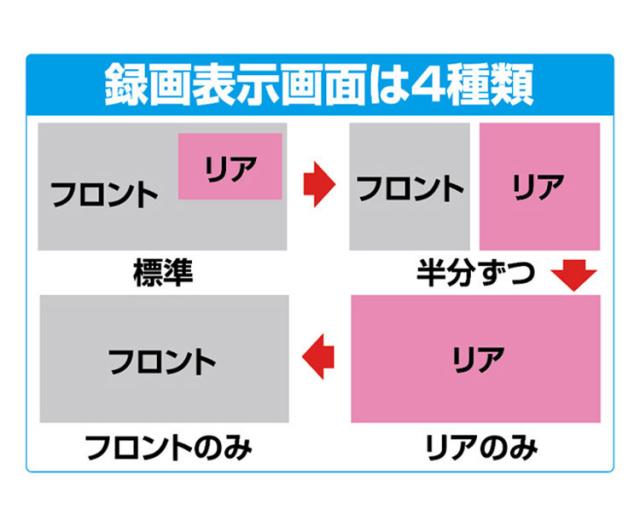 動画解像度:[フロント]1920×1080 30Fps/1280×720・[リア]25Fps/1280×720