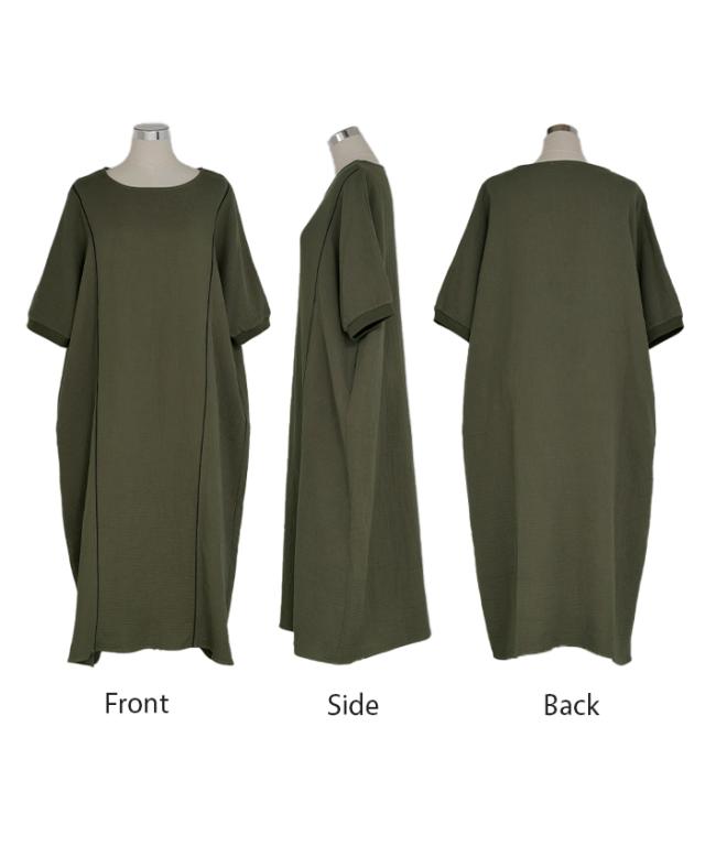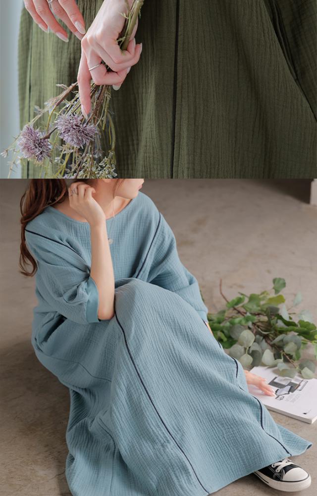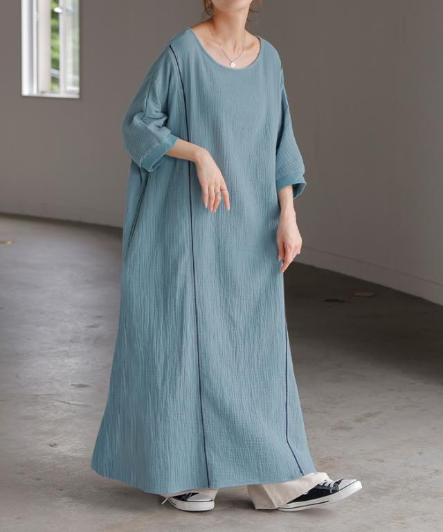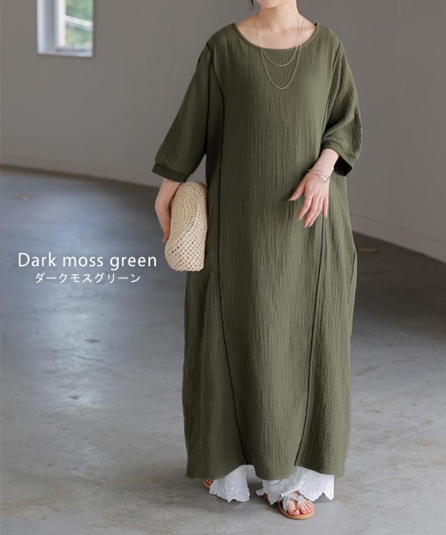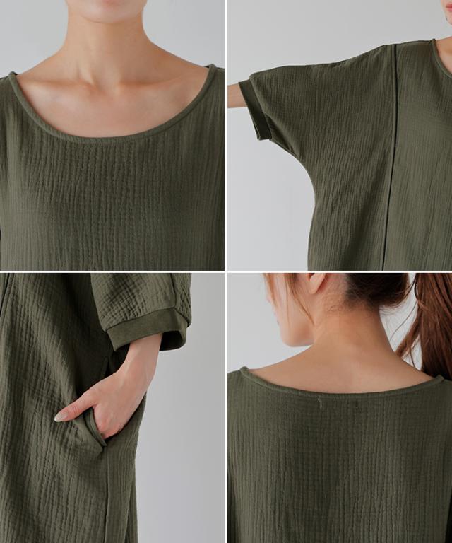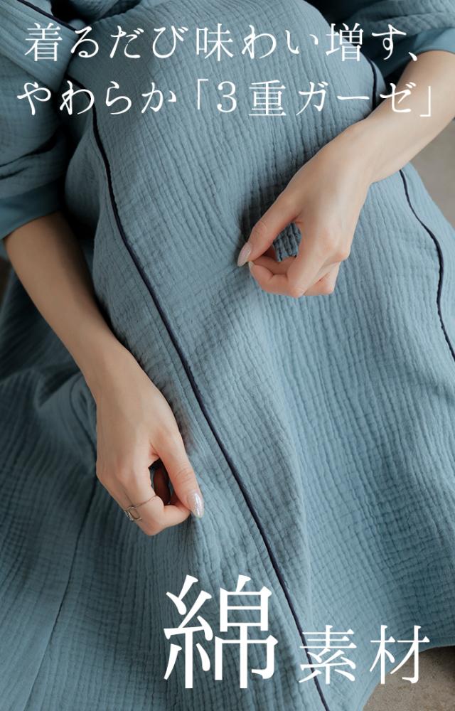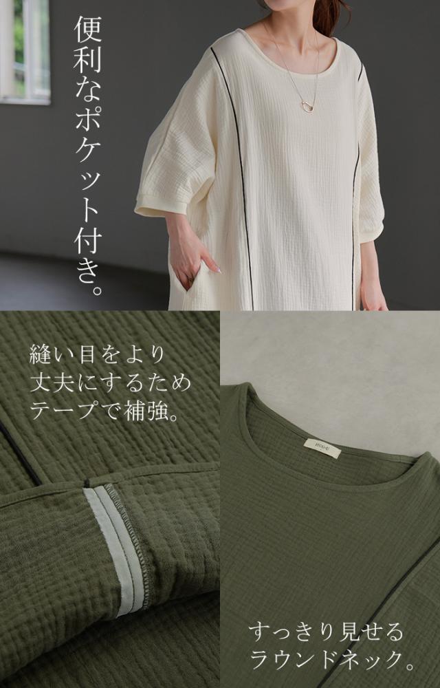 シンプルでベーシックなAラインシルエットのガーゼワンピースです。